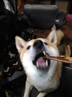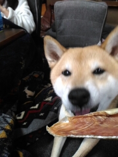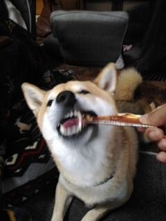 柴犬さくらの誕生日プレゼントだった鮭ジャーキー