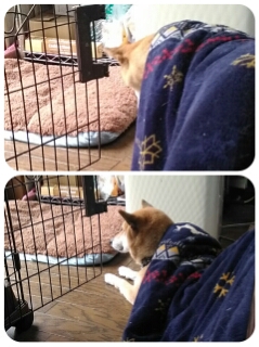 布団が邪魔なんだワンの柴犬さくらに、