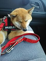 ゆっくり寝れなかったんだワンの柴犬さくらに