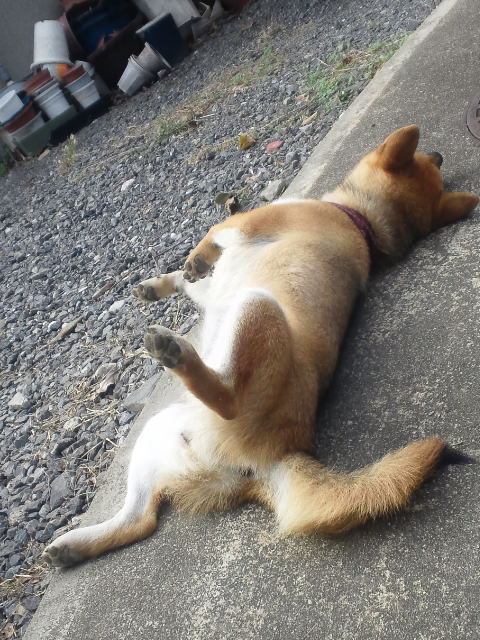 柴犬さくらが、行き倒れてましたf^_^;