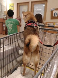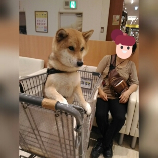 カートに乗ってるからか強気の柴犬さくらさん。