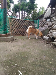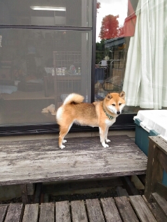 今まで寝てたのに、外に出ると訴える柴犬さくら。