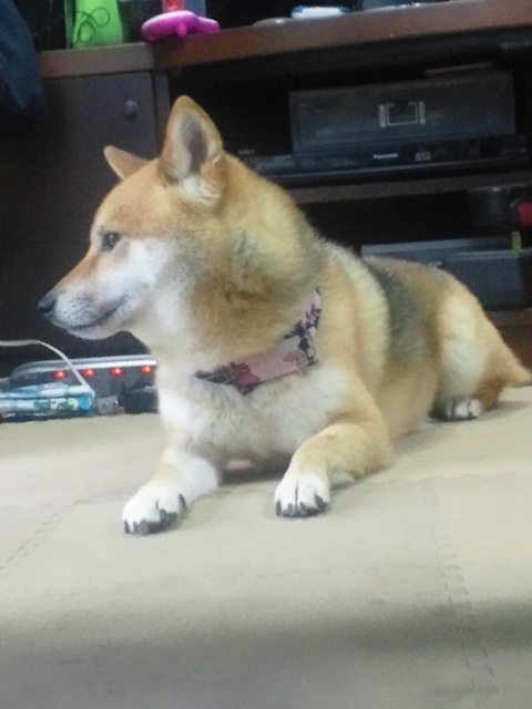 子ども達が遊びに行ってしまって、お留守番の柴犬さくら。