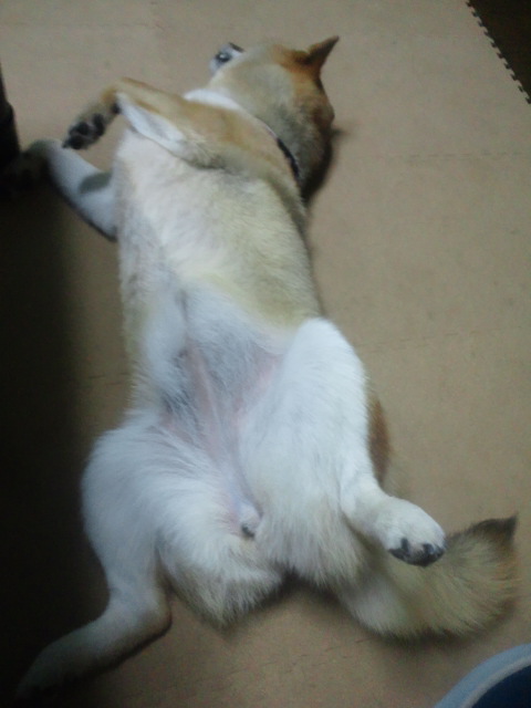 お腹乾かしてるだけだワンな柴犬さくらに