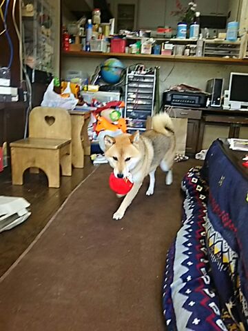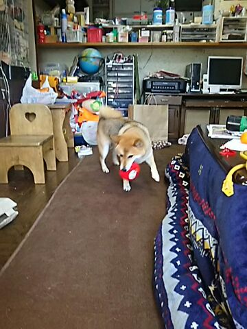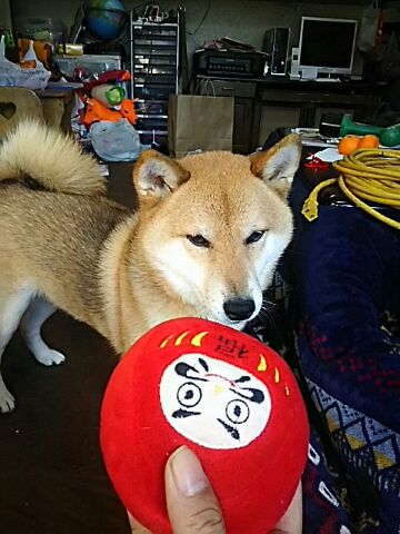 丸い達磨なら、柴犬さくらと遊べます。