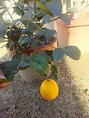 こんなに寒いのに、我が家の鉢植え檸檬が黄色く色づきました。