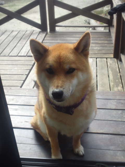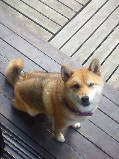 最近、お天気だとウッドデッキで昼寝している柴犬さくら。