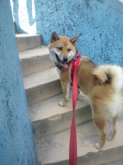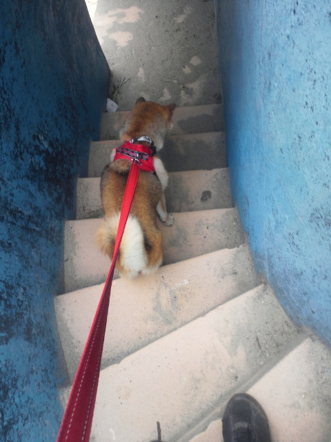 スンスン歩いていると、いつも行かない階段を登り始めた柴犬さくら