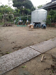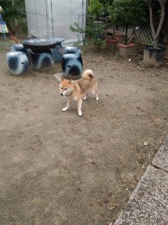 雨の無い時間に、庭で暴れていた柴犬さくら。