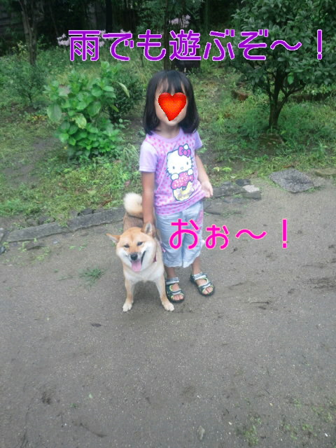 雨の日も、仲良く楽しく?遊ぶ娘と柴犬娘に