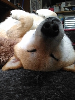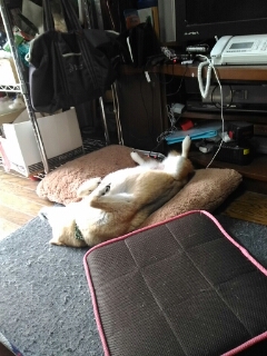 雨の日は部屋でゴロゴロ・・・桜太も同じです