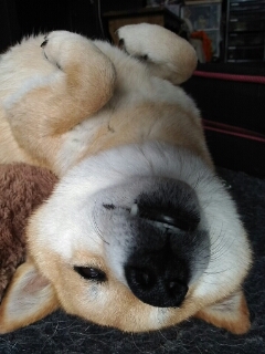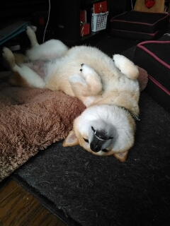 ヘソ天で癒し提供なんだワンの柴犬さくらに、