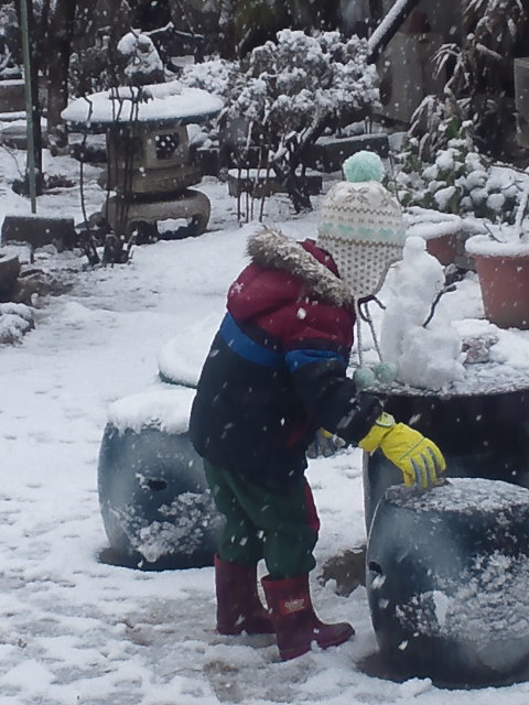 雪がうっすらしか積もらなかったので、綺麗に積もってる場所からかき集めて遊んでたんですよ。
