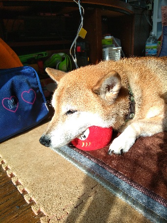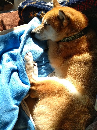 柴犬さくらも暖かい場所でお昼寝三昧。