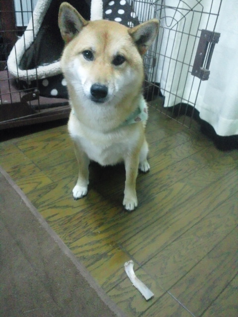偶然ですが、昨日うちの2柴も骨を食べました。