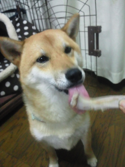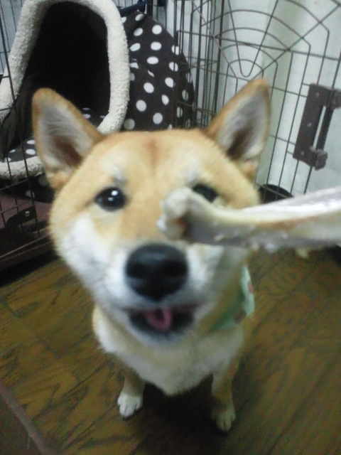 久しぶりに、骨付き肉を買った時、柴犬さくらにも、骨あげました。