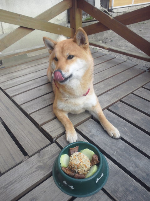 香りで判ってるのか、舌なめずりする柴犬さくら。