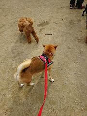 なぜ、ドッグランの外なら、ガウガウ行く時もあるくせに、中に入るとドヨ~んなの、不思議でなりません。