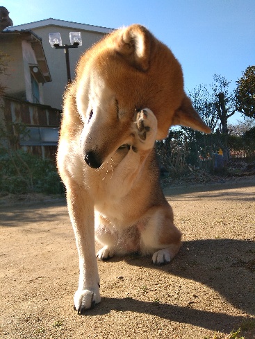 顔を洗い出した柴犬さん。