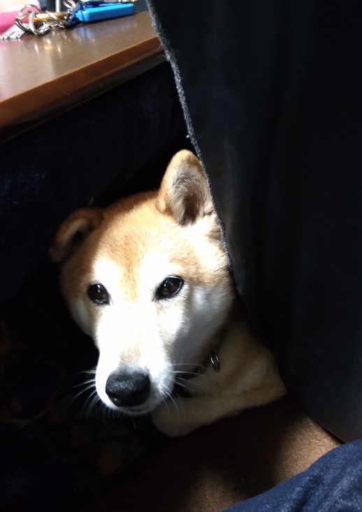 ふと目覚めた柴犬さん、隙間からひょっこり登場です。