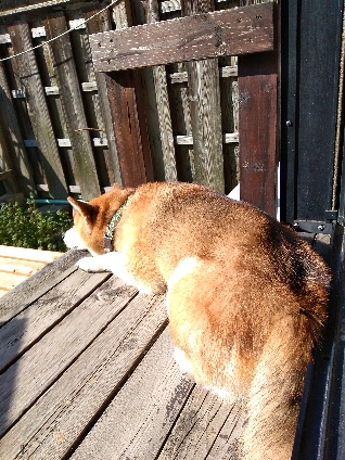 お部屋の中が暑かったのか、ウッドデッキでノンビリしてました。