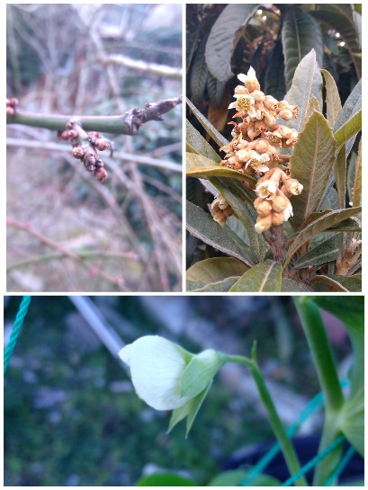 梅の蕾も膨らみ始め、琵琶の花も咲いてます。