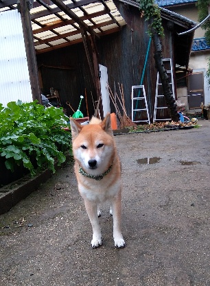 なので、柴犬さくらも庭に出て一仕事