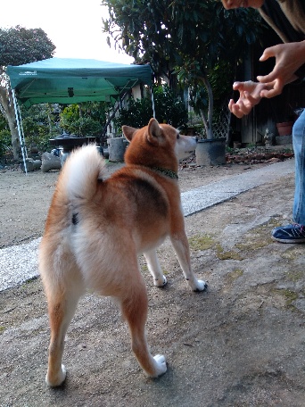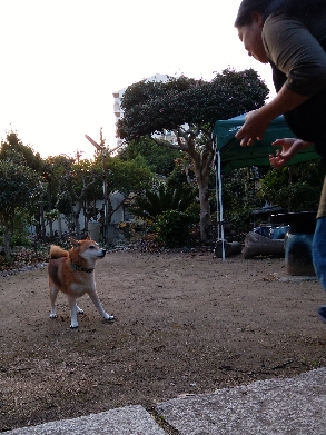 一応、逃げるふりする柴犬さん。