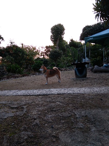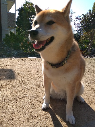 お日さまの動きに合わせて、柴犬さんも移動します。