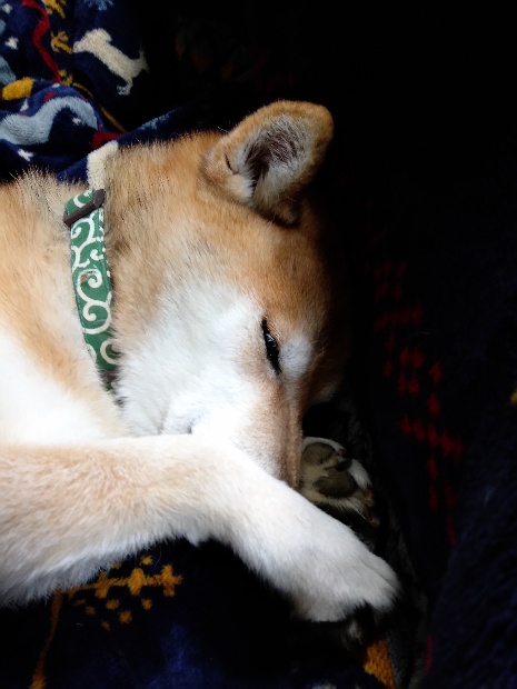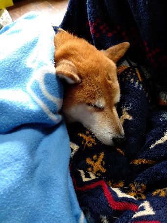 今日は朝から寒かったんだワンの柴犬さくらに、