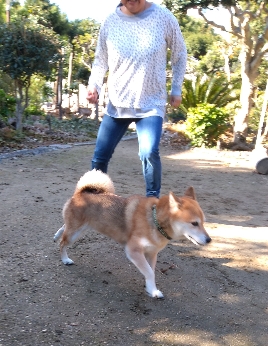 ママの運動に協力してるんだワンの柴犬さくらに、