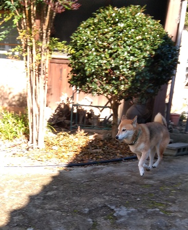 急ブレーキをかける柴犬さん、飛んだ気になってるのかな。