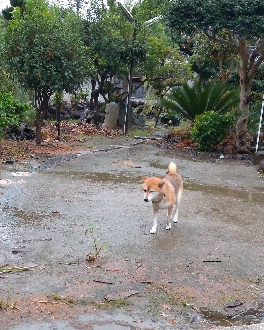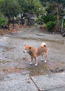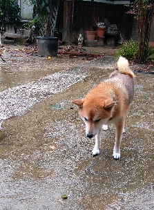 しかし、何を思ったか、雨の中でたたずむ柴犬さん、