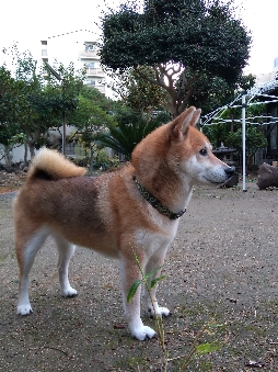 気持ちいい秋晴れの下、食欲の秋を少し満喫した柴犬さんでした。