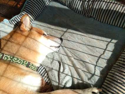 いろいろと野暮用があって、昼間は留守番昼寝だった柴犬さん。
