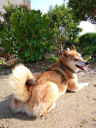 外から戻った柴犬さくら。