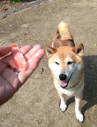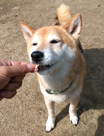 新しいオヤツにワクワクの柴犬さん