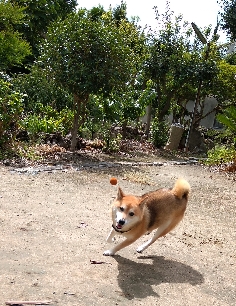 とりあえずボールにタッチしたら良いと思ってる柴犬さんです。
