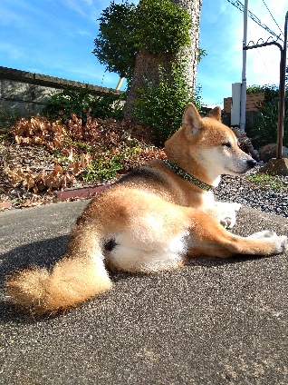 日向に居ると暑く感じますが、柴犬さんは程よいらしい。