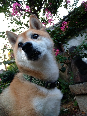 花も付いてるので、柴犬さんにモデルしてもらいました。