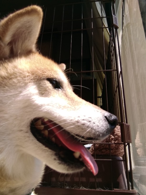 のぞき込んでみると、もうあかんなお顔の柴犬さん。