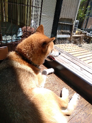 エアコンのガンガン効いた部屋でお日様で暖を採る…なんて贅沢な柴犬さん。