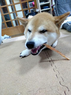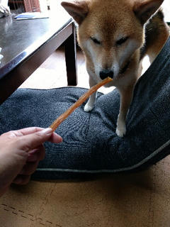 見たこと無いはずのオヤツなのに、すぐに食べ物と察知した柴犬さん・