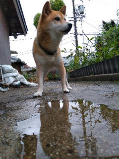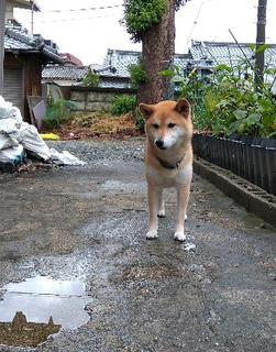 雨のやみ間のおトイレタイムの柴犬さくら