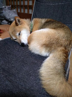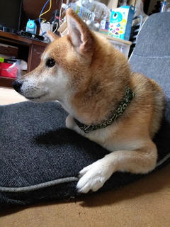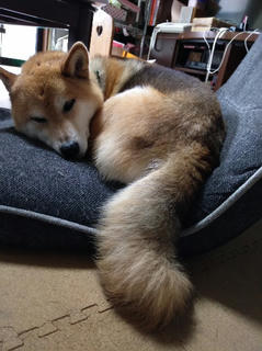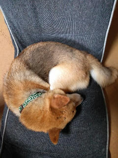 部屋に入ると、少し気温が低いせいか、真ん丸クロワッサン柴に。