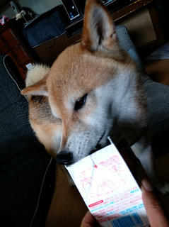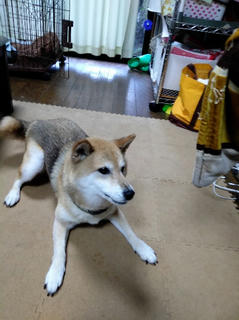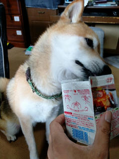 オヤツ本体はもらえなかったけど、棚ぼたで生クリーム満喫した柴犬さんでした。