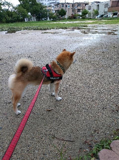 トイレ外派の柴犬さくら、雨のに止み間にお散歩へGO!