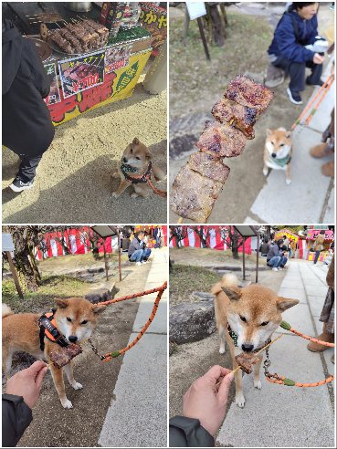 肉ぐし食べる柴犬さん!