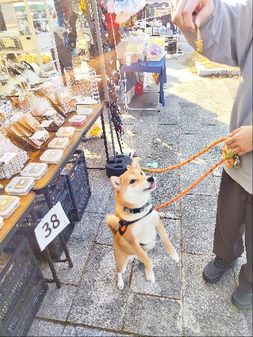 モデルやってるより、試食が良いんだワンの柴犬まいに