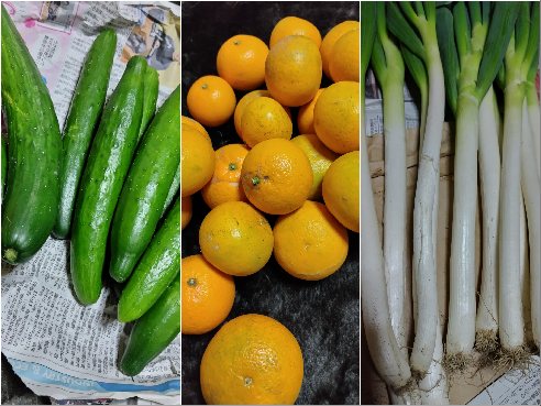 今年はおみかんと、この時期貴重なキュウリも一緒に届きました。毎年頂く白葱、ホント美味しいのです。